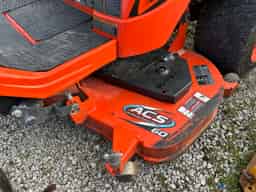 – 60″ cut – 24.8 HP – Excellent paint – Excellent metal – Hydraulic deck lift – Suspension seat – Built-in maintenance lift – Starts and runs well – Single owner