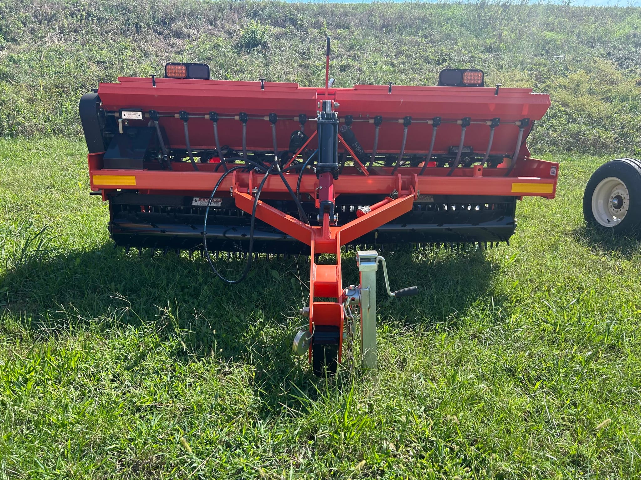 – 9′ multi-purpose seeder – Pull-type – Main seed box and small seed box – Front spike roller – Acre meter